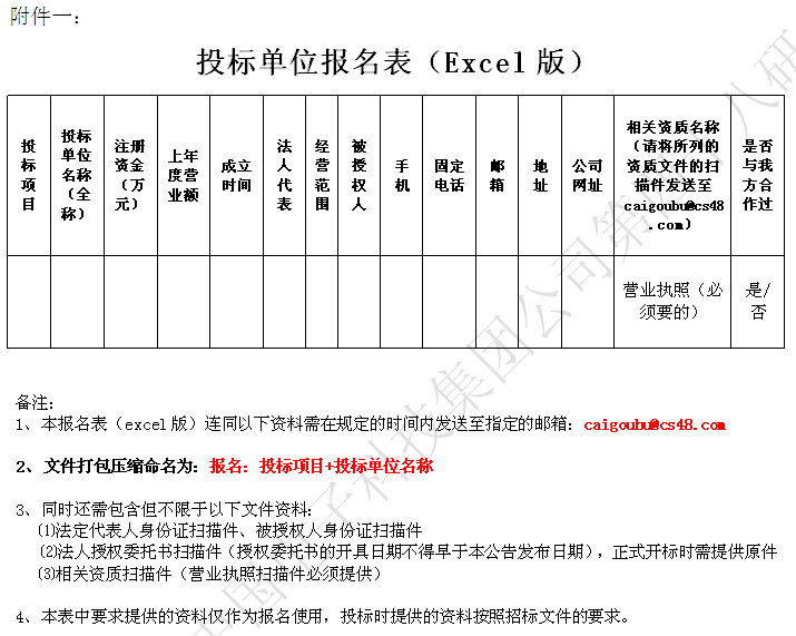 5.1凡符合投标资格要求并有意参加投标者,即日起至2019年01月11日填写附件一《投标报名表》发送至联系邮箱进行报名。